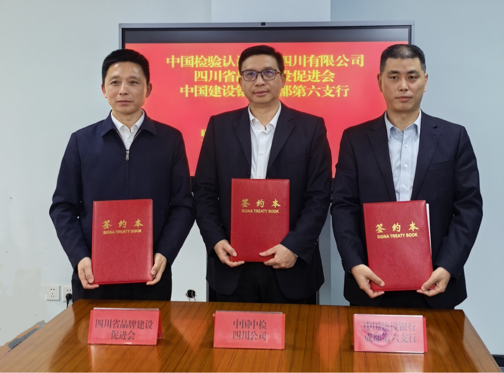 为深入贯彻国家市场监督管理总局、中国人民银行、国家金融监督管理总局印发的《关于开展质量融资增信工作更好服务实体经济高质量发展的通知》要求,推动“质量+金融”深度融合与创新实践,3月6日,中国中检四川公司与四川省品牌建设促进会、中国建设银行股份有限公司成都第六支行正式签署质量融资增信三方战略合作协议。