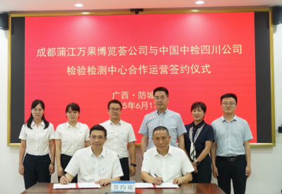 会后,成都蒲江万果博览荟商业运营管理有限公司与中国中检四川公司签署实验室合作运营协议,双方将共同运营检验检测中心,重点开展水果检测认证、溯源体系搭建及标准化服务。万果公司总经理黄文和四川公司总经理邓国军代表双方签署协议。